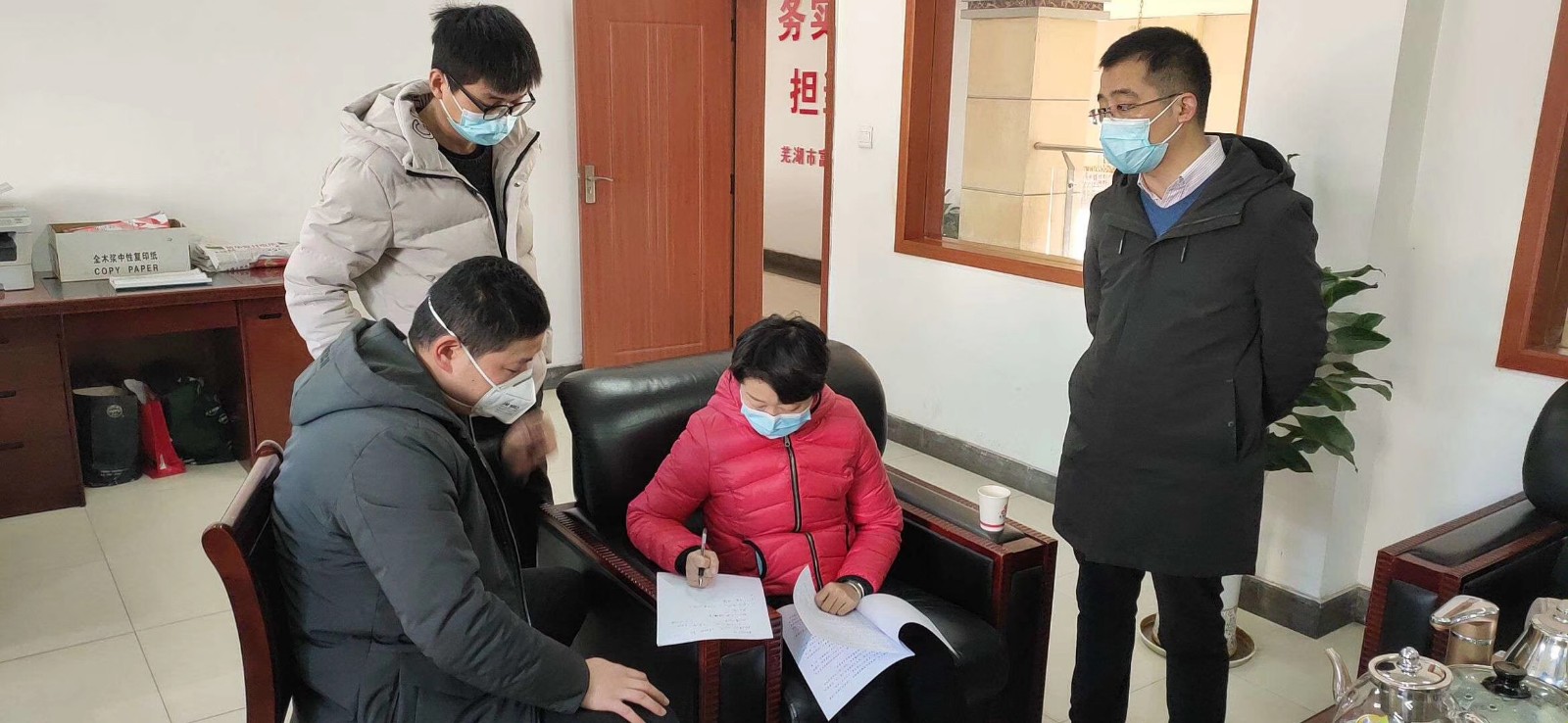 2月18日上午,新港鎮(zhèn)黨委書記張瑩、鎮(zhèn)黨委組織委員汪鵬一行蒞臨公司,對貫徹落實繁昌縣委關(guān)于要求疫情防控期間突出重點、統(tǒng)籌兼顧,分類指導(dǎo)、分區(qū)施策,切實把疫情防控和企業(yè)復(fù)工復(fù)產(chǎn)等各項工作抓實、抓細、抓落地,努力實現(xiàn)今年全縣經(jīng)濟社會發(fā)展目標任務(wù)的總要求對公司進行復(fù)工預(yù)案制定現(xiàn)場指導(dǎo)。期間張瑩一行還深入車間生產(chǎn)一線,仔細詢問了疫情期間公司員工的生產(chǎn)防護及生活保障等情況,并對富鑫作為繁昌民營大企,在疫情嚴峻的形勢下,積極響應(yīng)各級黨委號召,聽黨指揮,把不忘初心,牢記使命教育成果落到實處提出表揚。