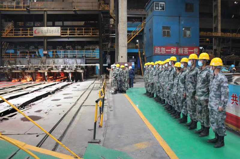 5月20日上午,陽光明媚,在這個(gè)愛意滿滿的日子里,“最可愛的人”駐繁部隊(duì)官兵及近50名新入伍戰(zhàn)士一行走進(jìn)富鑫公司觀摩煉鐵、煉鋼生產(chǎn)流程。活動(dòng)中,全體官兵軍容嚴(yán)整,步伐一致,體現(xiàn)了新時(shí)代的革命軍人斗志昂揚(yáng)的精神面貌。活動(dòng)結(jié)束后,該部隊(duì)政委表示,此次觀摩活動(dòng),十分有意義,感受深刻,富鑫鋼鐵的一線職工們給新入伍的同志上了一堂生動(dòng)形象的國防教育課。通過現(xiàn)場觀看煉鐵、煉鋼的生產(chǎn)流程,教育全體官兵,只有在革命的艱難困苦中戰(zhàn)勝敵人,在生活的巨大壓力中戰(zhàn)勝自己,只有把自己的追求和祖國、人民的利益聯(lián)系在一起的時(shí)候,才會(huì)創(chuàng)造奇跡,才會(huì)成長成為鋼鐵戰(zhàn)士,牢固樹立為革命獻(xiàn)身,鋼鐵般的意志和頑強(qiáng)奮斗的品質(zhì)。